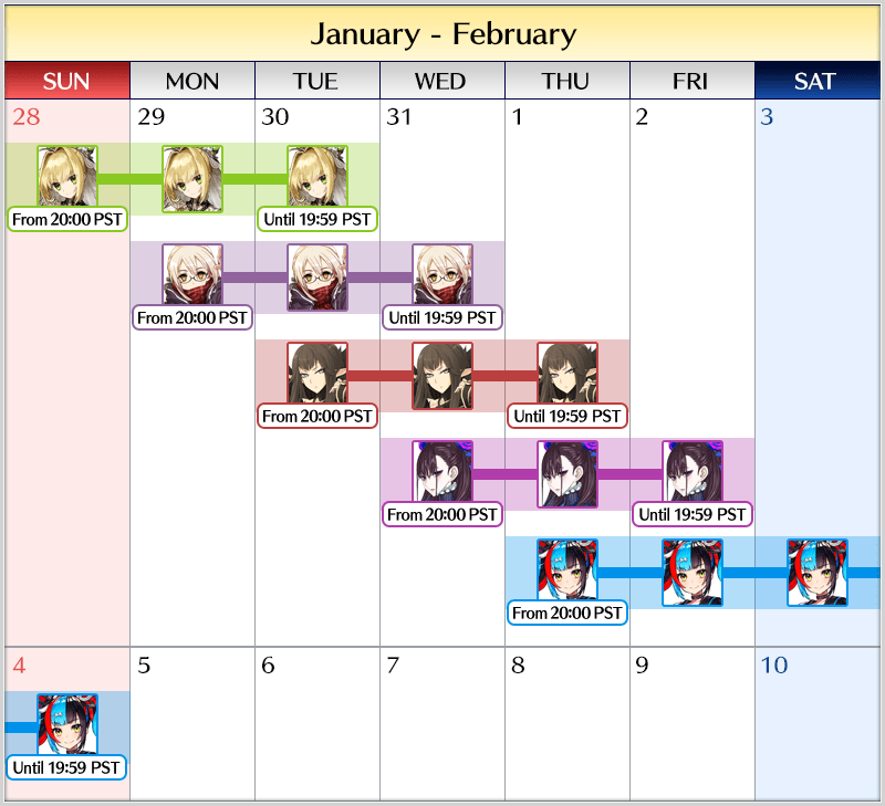 * Bonus Summons will be calculated separately for each Summon Lineup. * Please note that the Summon Period for each Pickup Summon will differ. * In this Summon, only the Pickup ★5 (SSR) Servant in each individual Summon will be eligible for the "Guaranteed Summon" feature.
