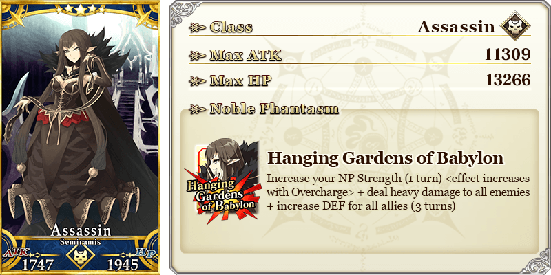 Valkyrie Style ATK 200 (MAX: 750) HP 320 (MAX: 1200) Skill Increase NP Gauge by 3% each turn & NP Strength by 15% for yourself |