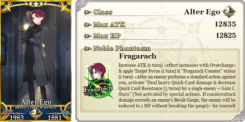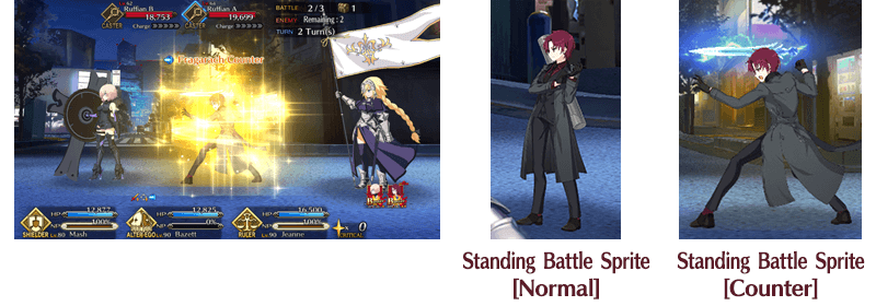 * If the Servant is rendered immobile by Stun, Charm, Petrify, Sleep, or other such status effects, they will not be able to perform counter-attacks.