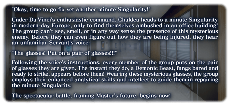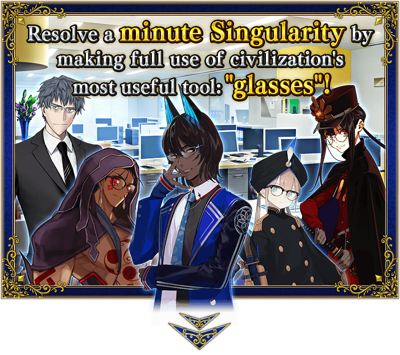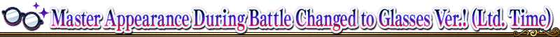 During the period below, your Master's appearance will change to a glasses version during event quest battles. This look is compatible with all Mystic Codes, so equip your favorite and progress in the event!