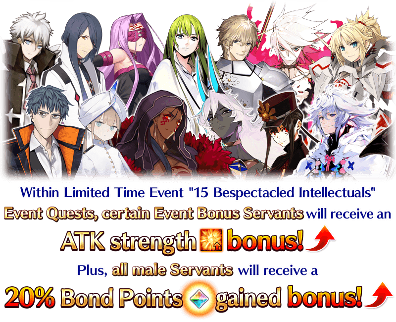In addition, all male Servants will receive a "Bond Points Gained" bonus within event quests!