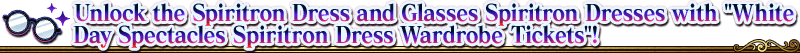 * The "White Day Spectacles Spiritron Dress Wardrobe Tickets" required to unlock each Spiritron Dress obtained in this event will only be obtainable during the event period of Limited Time Event "15 Bespectacled Intellectuals".