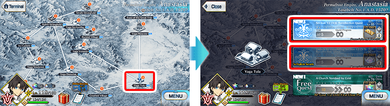Each Recollection Quest will appear on the Part 2 Chapter 1 "Lostbelt No.1: Permafrost Empire, Anastasia - The Grand Duchess of the Beast Nation" map as you fulfill its unlock requirements.