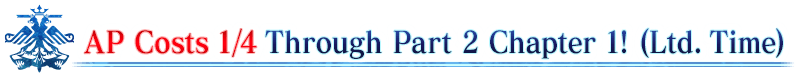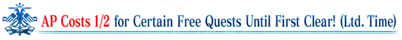During the period below, AP costs for story quests through Part 2 Chapter 1 will be 1/4 of the original amount!
