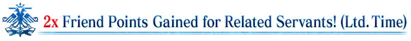 * Friend Points awarded will also be doubled for Masters that are not Friends. * Please note that this bonus will not apply to Guest Servants.