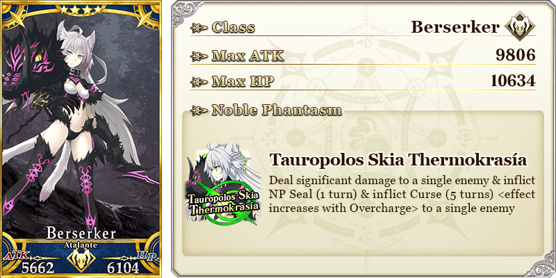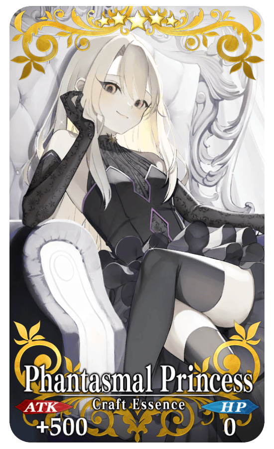 ★★★★★SSR Phantasmal Princess ATK 500 (MAX: 2000) HP 0 Skill Increase NP Strength by 60% if equipped by [Berserker] class (Fixed on March 7th) |