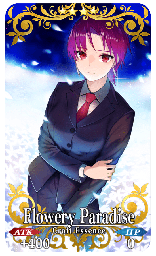 ★★★★SR Flowery Paradise ATK 400 (MAX: 1500) HP 0 Skill Increase C. Star Gather Rate by 300% & increase Quick Card effectiveness by 8% for yourself |