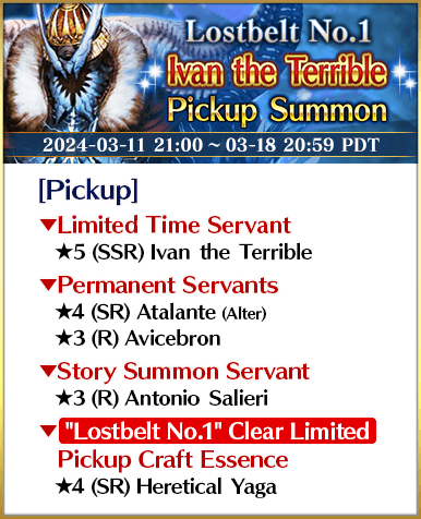 * The following Craft Essence(s) will be added to Story Summon after the Pickup Summon period ends on 2024-03-18 21:00 PDT (GMT -7).