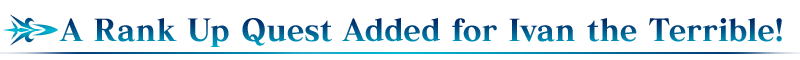 A special Servant Rank Up Quest to strengthen ★5 (SSR) Ivan the Terrible will be permanently added to Chaldea Gate.