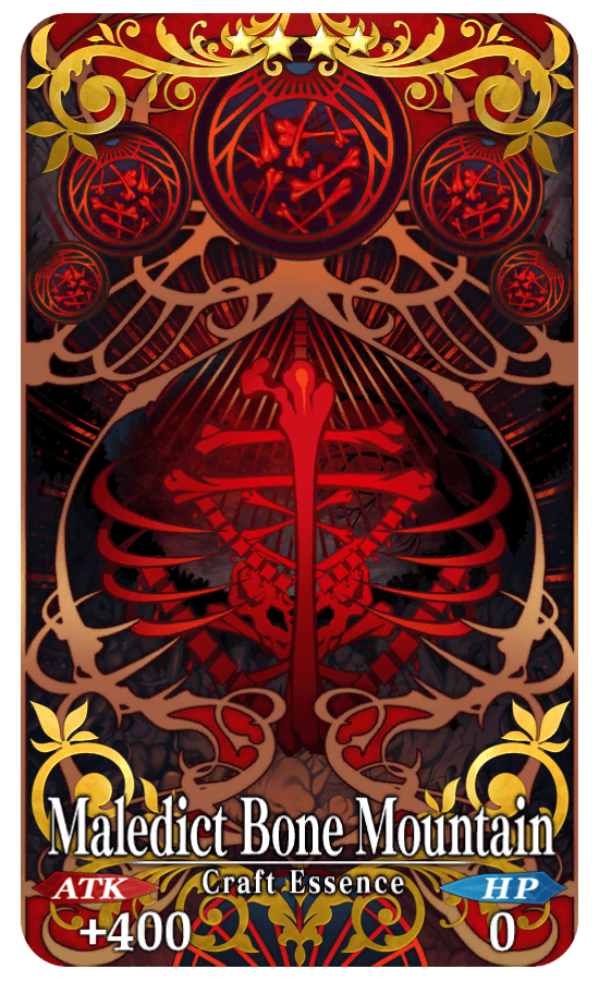★★★★SR Maledict Bone Mountain ATK 400 HP 0 Skill Increase chance of (Evil Bone) drops by 5% <Applied to original drop rate>