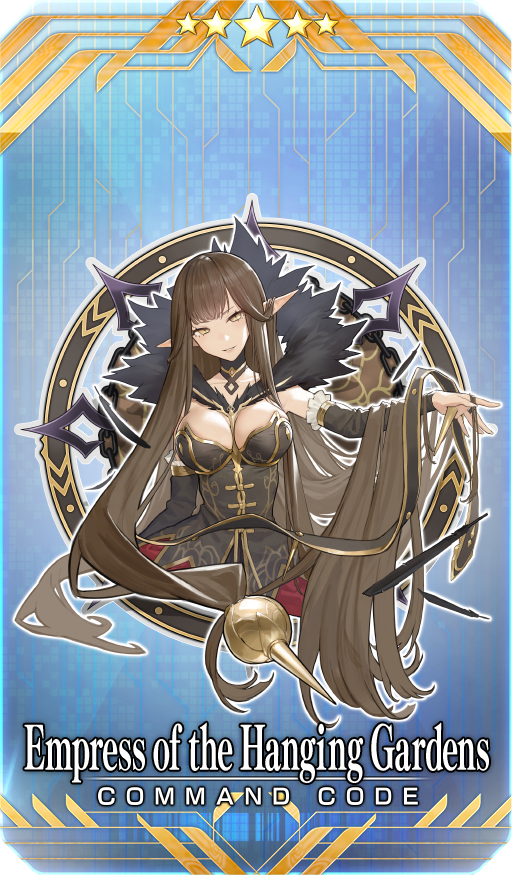 [Event Limited] ★★★★★SSR Empress of the Hanging Gardens Skill Increase your NP Strength by 10% (1 turn) when attacking with the engraved Card + Gain 2 C. Stars |