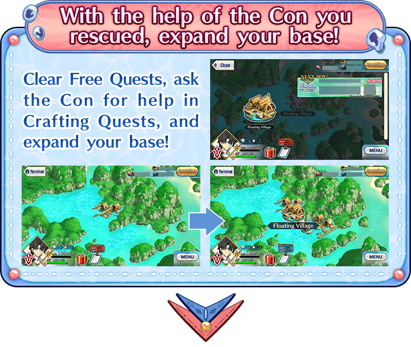 In Crafting Quests, you can develop your base with the help of the Con you rescued. The more Con you rescue, the sooner you can develop your base and take back the stolen areas of the island!
