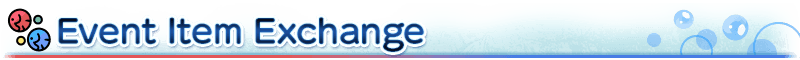 Event items can be exchanged for the following items through "Event Item Exchange", accessible from the "Event Shop" button in the upper right corner of the Terminal.