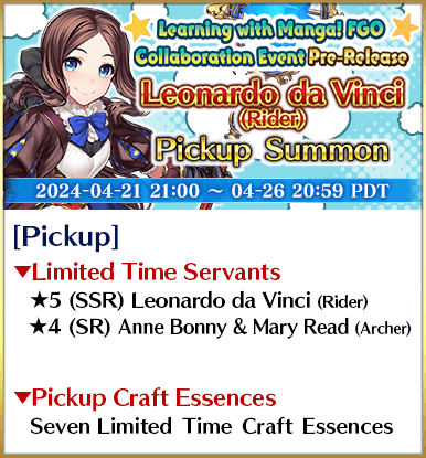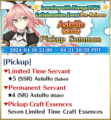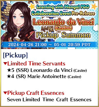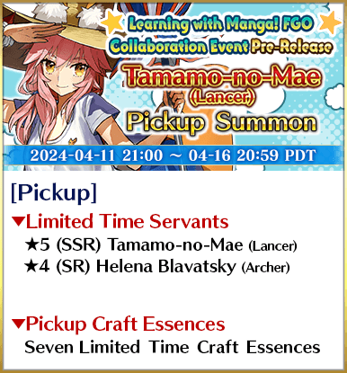 "Learning with Manga! FGO Collaboration Event Pre-Release Pickup Summon" Period: