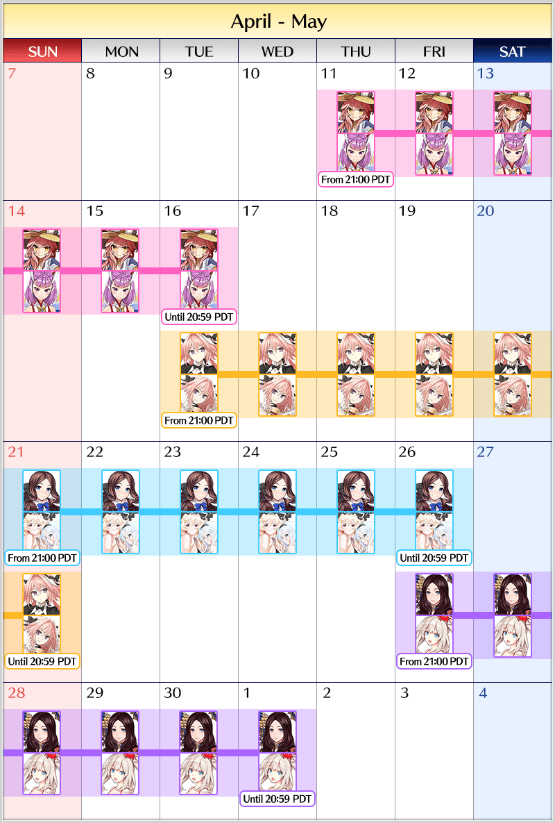 - If multiple Limited Time Pickup Summons are available at once, the number of summons you have performed will be counted individually for each Pickup Summon (each page on the Summon Screen). In addition, summons will be counted individually for each Summon Period that the Pickup Lineup changes for a Daily Pickup Summon. For example, in a Daily Pickup Summon where the Pickup Lineup changes each day at 21:00 PDT (GMT -7), your summon count will be reset at the moment the Pickup Lineup changes.