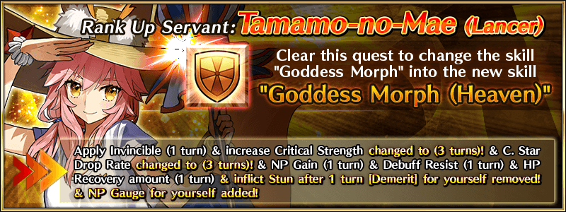 Servant Rank Up Quests to strengthen ★5 (SSR) Tamamo-no-Mae (Lancer), ★4 (SR) Anne Bonny & Mary Read (Archer), and ★4 (SR) Helena Blavatsky (Archer) will be permanently added to Chaldea Gate.