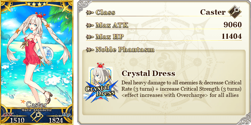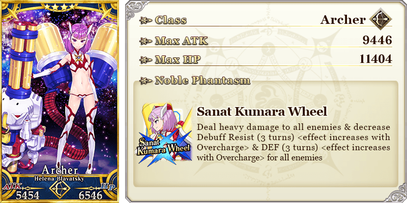 ★★★R Maximum Overdrive ATK 200 (MAX: 1000) HP 0 Skill Increase the amount of QP earned by 2024 when completing quests |