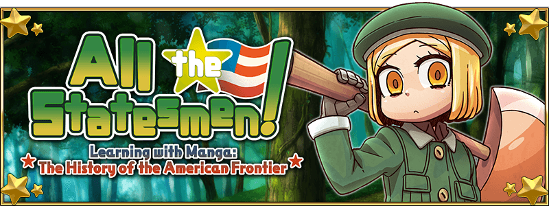 About "All the Statesmen! Learning with Manga: The History of the American Frontier": * You can play "All the Statesmen!" even if you have previously cleared the following Limited Time Events. - All the Statesmen! Learning with Manga: The History of the American Frontier - Revival: All the Statesmen! Learning with Manga: The History of the American Frontier * The story will be the same as that of the original Limited Time Event "All the Statesmen! Learning with Manga: The History of the American Frontier" from 2019. * The Support Servant lineup set as "Normal" will be displayed in Select Support for quests.