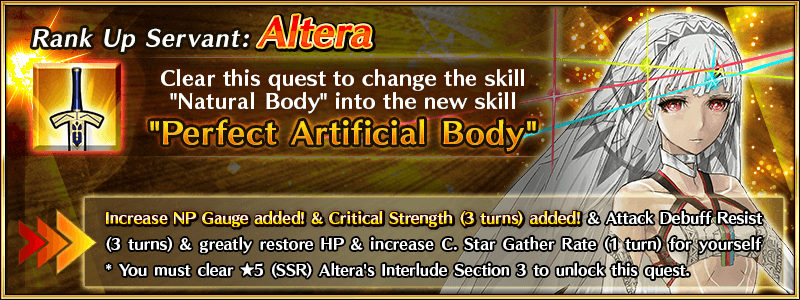 You must also have cleared Interlude III for ★5 (SSR) Altera to unlock her Rank Up Quest.