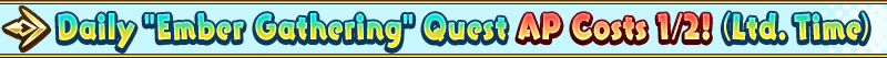Daily "Ember Gathering" quests within Chaldea Gate will have AP costs halved! for a limited time! (AP costs do not change even if you withdraw from battle)