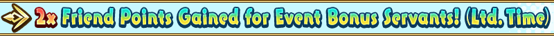 * Friend Points awarded will also be doubled for Masters that are not Friends. * Please note that this bonus will not apply to Guest Servants.