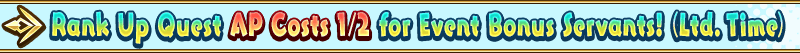 For the following period, Rank Up Quests for Event Bonus Servants from the "Learning with Manga! FGO" x Fate/Grand Order Collaboration Event will have AP costs halved!