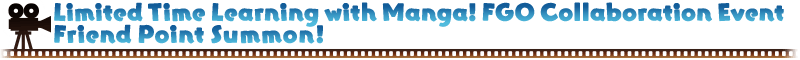 For the duration of the event period, Friend Point Summon will become "Limited Time Learning with Manga! FGO Collaboration Event Friend Point Summon" for a limited time.