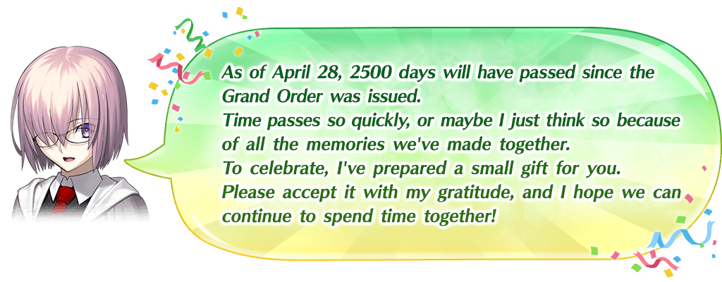 The presents will be sent to your Present Box on the first login between 2024-04-28 21:00 and 04-29 20:59 PDT (GMT -7).
