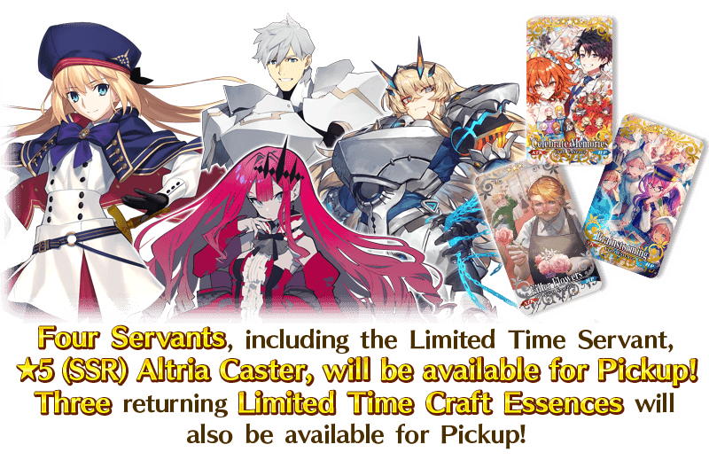 During the Pickup Period, the Pickup Servants and Pickup Craft Essences will have an increased drop rate!