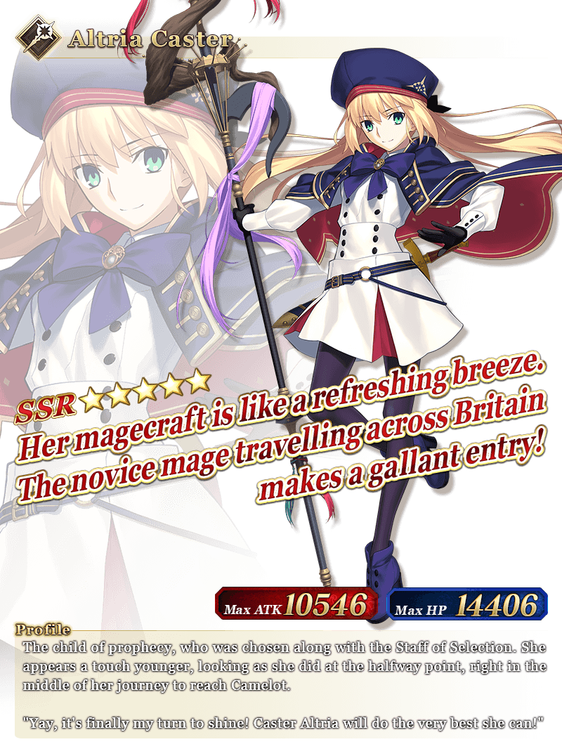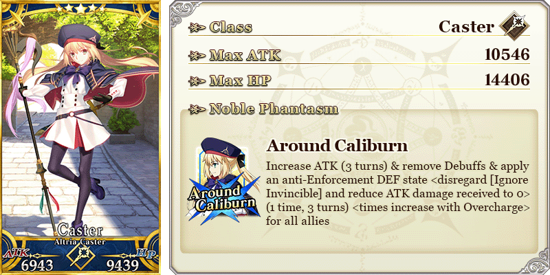 * The Noble Phantasm name and animations for "★5 (SSR) Altria Caster" will change based on Ascension stage.