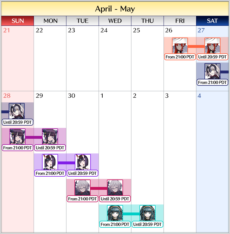 2024-04-26 21:00 - 05-02 20:59 PDT (GMT -7)