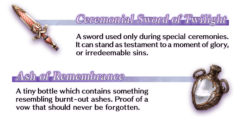 Ceremonial Sword of Twilight and Ash of Remembrance will be added to "Exchange Pure Prisms" in the Da Vinci Workshop as exchangeable items at 2024-05-26 21:00 PDT (GMT -7).