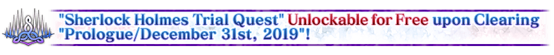 "Sherlock Holmes Trial Quest", available for exchange in "Exchange Rare Prisms" within the Da Vinci Workshop, will be made unlockable for free for users who have cleared Part 2 Prelude: "Prologue/December 31st, 2019"!