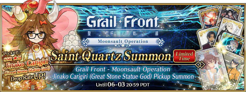 "Grail Front - Moonsault Operation Jinako Carigiri (Great Stone Statue God) Pickup Summon" Details: