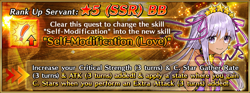 A "Servant Rank Up Quest" to strengthen ★5 (SSR) BB will be permanently added to Chaldea Gate.