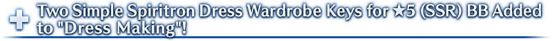 * Please note that although it is possible to obtain the Spiritron Dress Wardrobe Keys even if you do not have ★5 (SSR) BB, you cannot unlock the Spiritron Dresses.