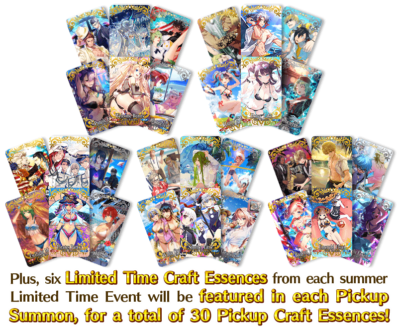 Plus, a total of 30 Limited Time Craft Essences (six in each Summon) that first appeared in past summer Limited Time Events will be available for Pickup!