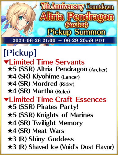 "7th Anniversary Countdown Altria Pendragon (Archer) Pickup Summon"