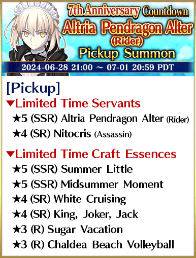 "7th Anniversary Countdown Altria Pendragon Alter (Rider) Pickup Summon"