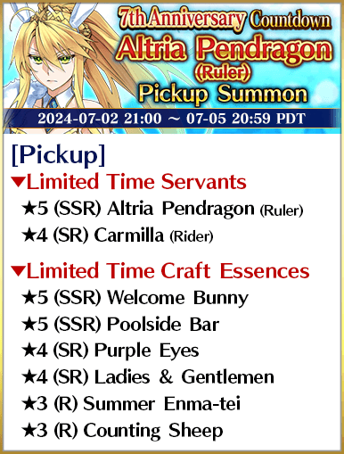 "7th Anniversary Countdown Altria Pendragon (Ruler) Pickup Summon"