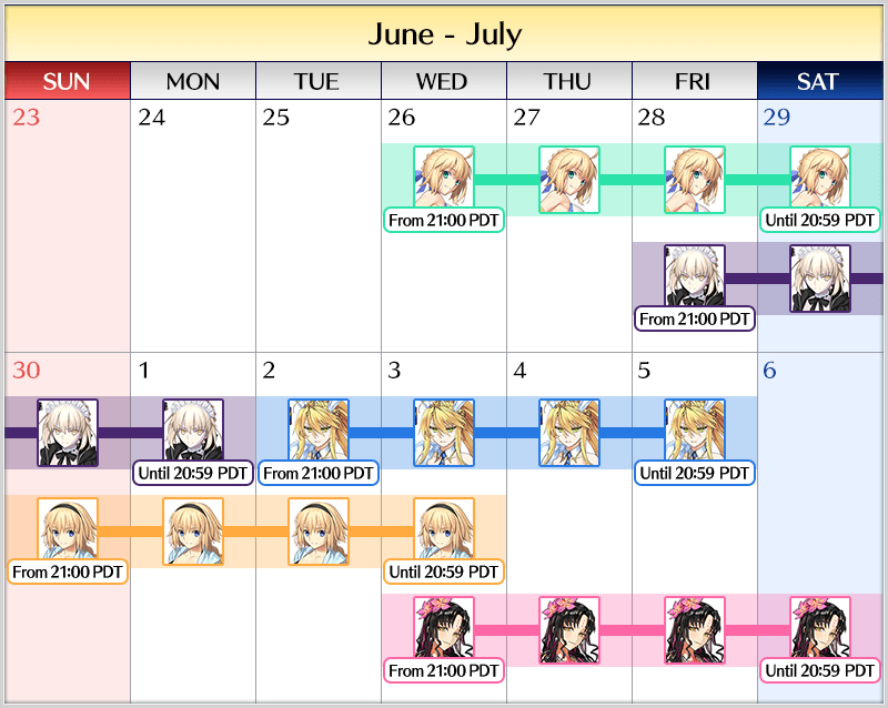 - If multiple Limited Time Pickup Summons are available at once, the number of summons you have performed will be counted individually for each Pickup Summon (each page on the Summon Screen). In addition, summons will be counted individually for each Summon Period that the Pickup Lineup changes for a Daily Pickup Summon. For example, in a Daily Pickup Summon where the Pickup Lineup changes each day at 21:00 PDT (GMT -7), your summon count will be reset at the moment the Pickup Lineup changes.