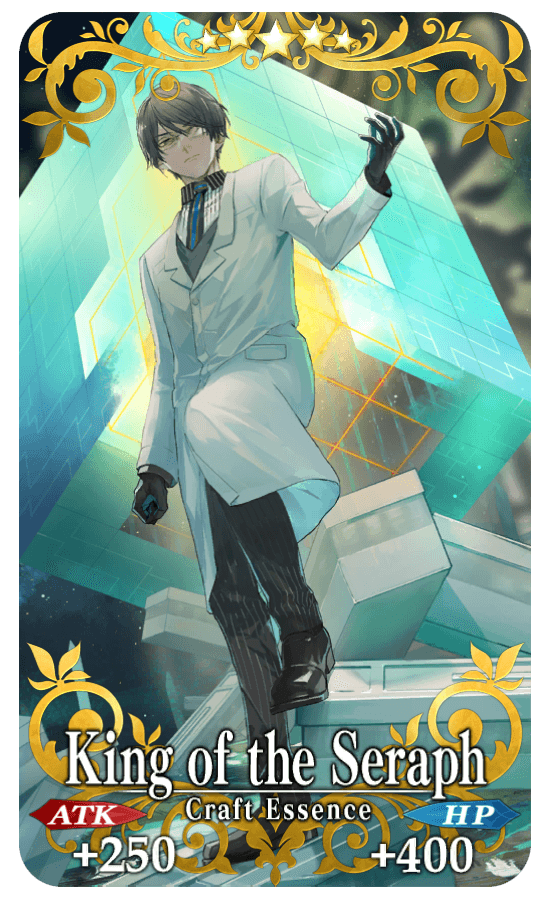 About Featured Craft Essences: * The following Craft Essence(s) will not have an increased drop rate. - ★5 (SSR) King of the Seraph - ★4 (SR) Hunter's Dream * The following Craft Essence(s) will be added to Story Summon after this Pickup Summon period ends. - ★5 (SSR) King of the Seraph - ★4 (SR) Hunter's Dream * The following Craft Essence(s) will not be summonable from this Pickup Summon due to the lineup update. - ★4 (SR) Knight's Dignity * The following Craft Essence(s) will be removed from Story Summon after this Pickup Summon period ends. - ★4 (SR) Knight's Dignity * The following Craft Essence(s) will continue to be available through the Tutorial Summon after this Pickup Summon period ends. - ★4 (SR) Knight's Dignity * The following Craft Essence(s) will also be available from Friend Point Summon for the duration of the Pickup Summon period. - ★3 (R) Retravel * The following Craft Essence(s) will be automatically burned if you have ★3 (R) Craft Essences included in your Automatic Burning settings. Please check your settings before summoning. - ★3 (R) Retravel