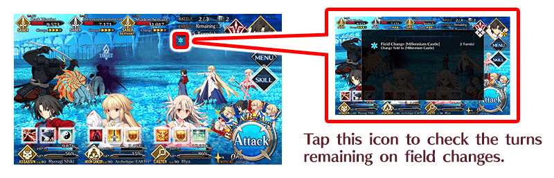 When ★5 (SSR) Archetype: EARTH's Noble Phantasm is used, the field becomes the [Millennium Castle] and the game music changes.