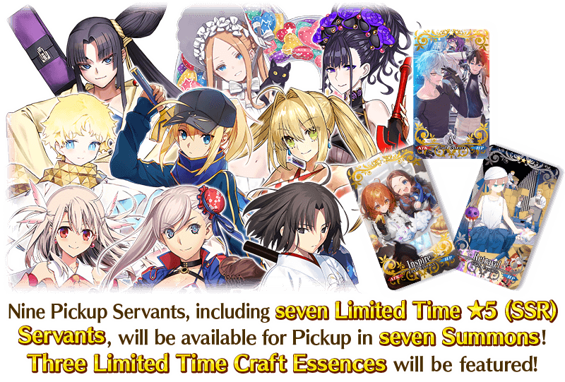 During the Pickup Period, the Pickup Servants and Pickup Limited Time Craft Essences will have an increased drop rate!