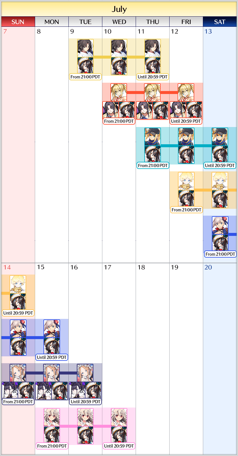 * Bonus Summons will be calculated separately for each Summon Lineup. * Please note that the Summon Period for each Pickup Summon will differ. * In this Summon, only the Pickup ★5 (SSR) Servant in each individual Summon will be eligible for the "Guaranteed Summon" feature.