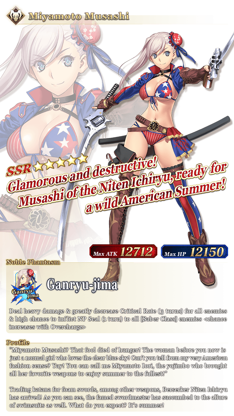 * The Noble Phantasm animations for ★5 (SSR) Voyager and ★5 (SSR) Miyamoto Musashi (Berserker) will change based on Ascension stage.