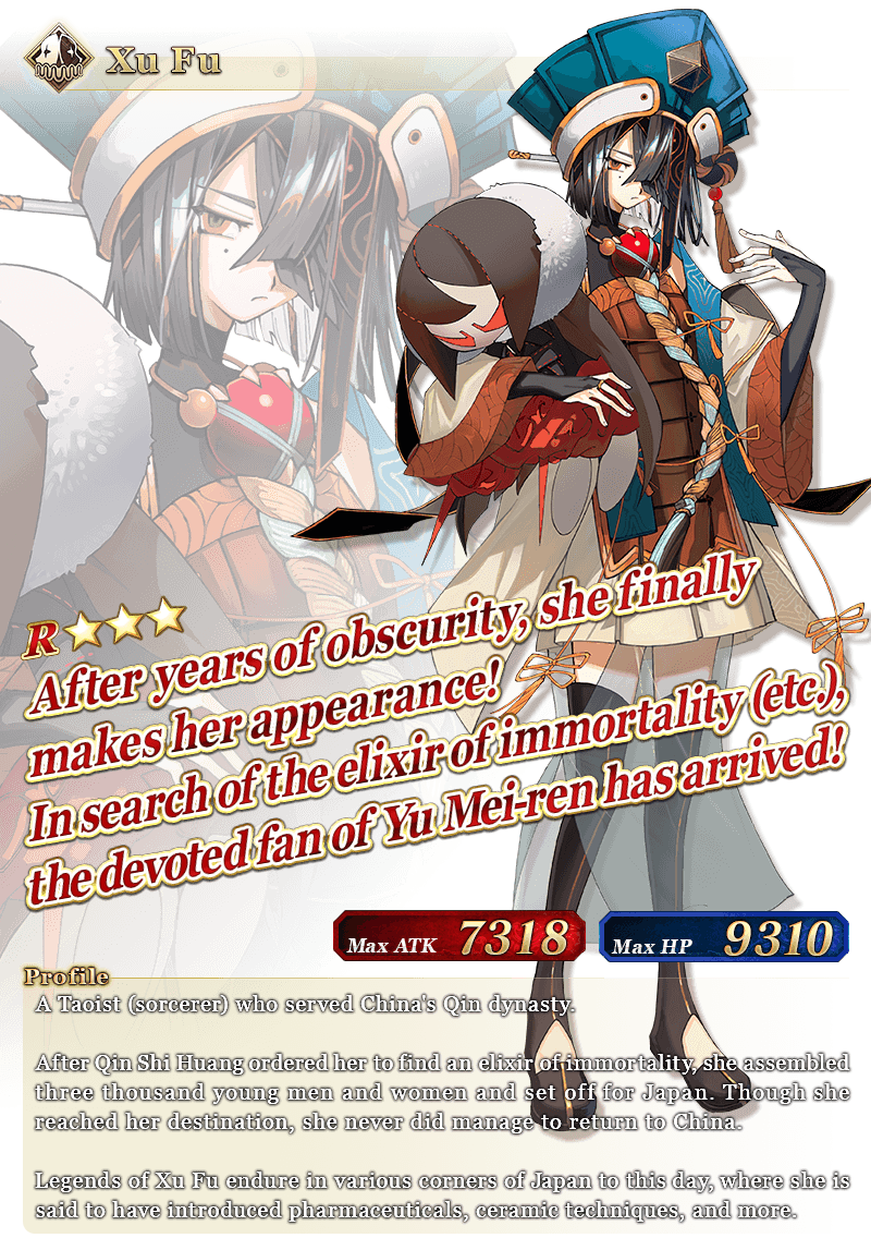 Also, new Servant "★3 (R) Xu Fu" and three Limited Time Craft Essences will be available for Pickup in all Summons and two new Craft Essences will be available in all Summons ahead of their official release to Story Summon!
