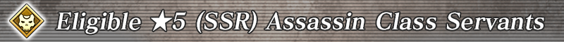 * Please note that the following Servant(s) will not be summonable and cannot be chosen for any of your ★5 (SSR) Guaranteed Summon Slots.