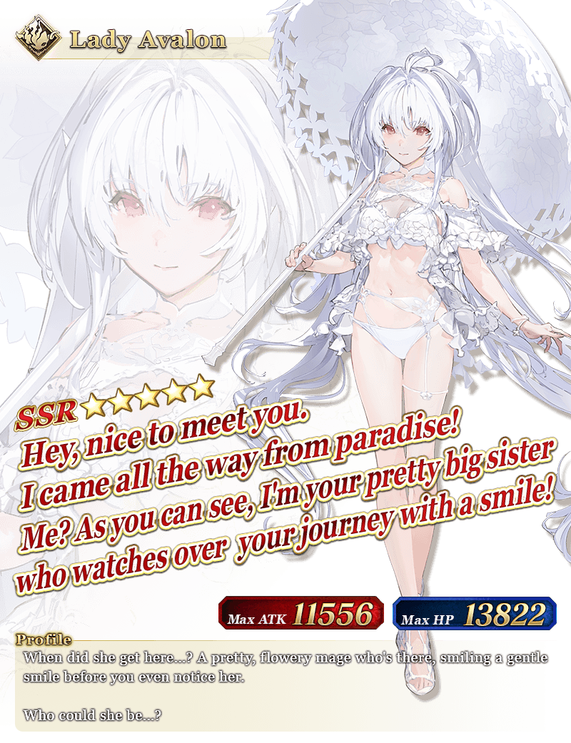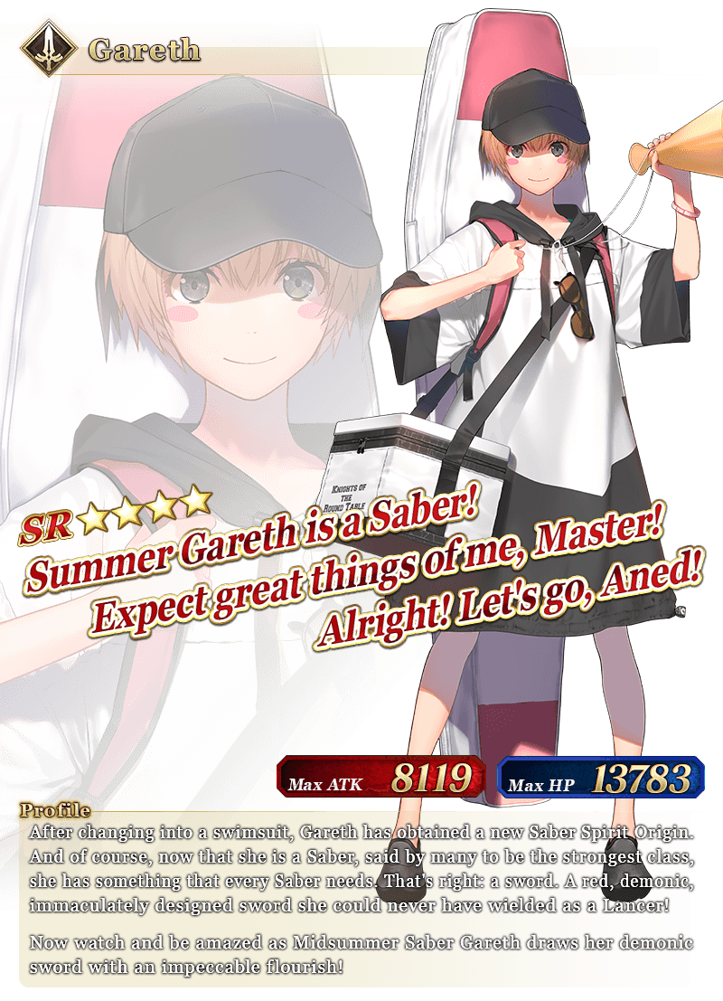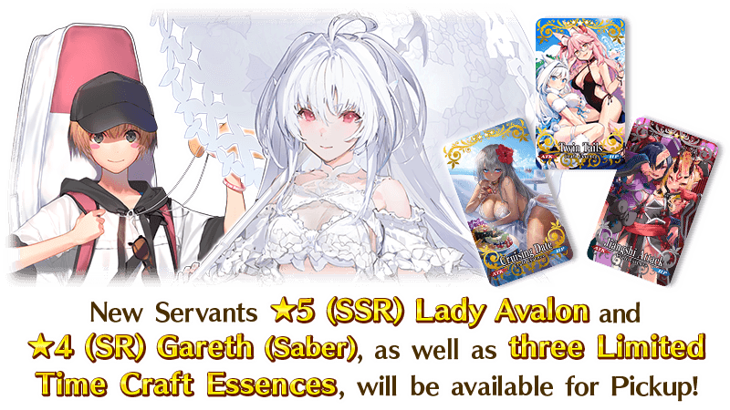 To celebrate the release of Limited Time Event "Arctic Summer World! Chaldea's Magical Summer Theme Park", new Limited Time Servants "★5 (SSR) Lady Avalon" and "★4 (SR) Gareth (Saber)", as well as three Limited Time Craft Essences, will be available for Pickup!