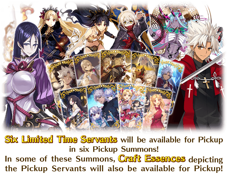 During the Pickup Period, the Pickup Servants and Pickup Craft Essences will have an increased drop rate!